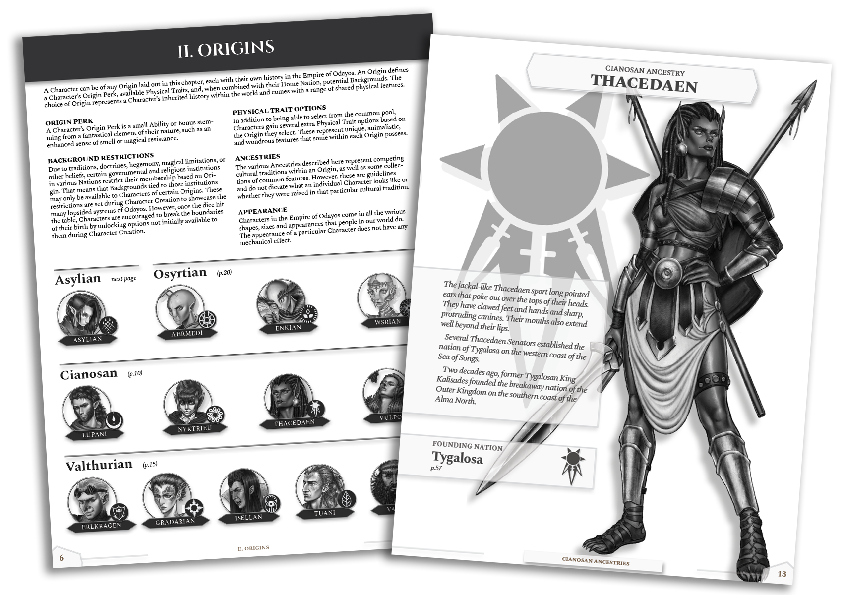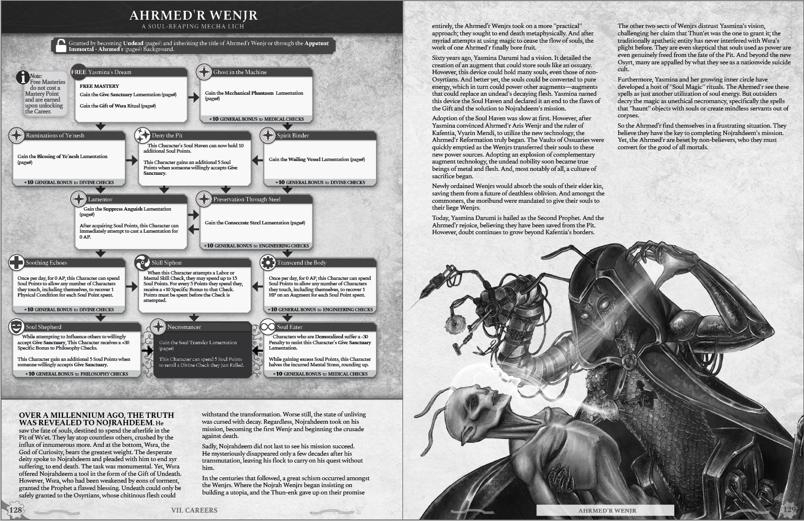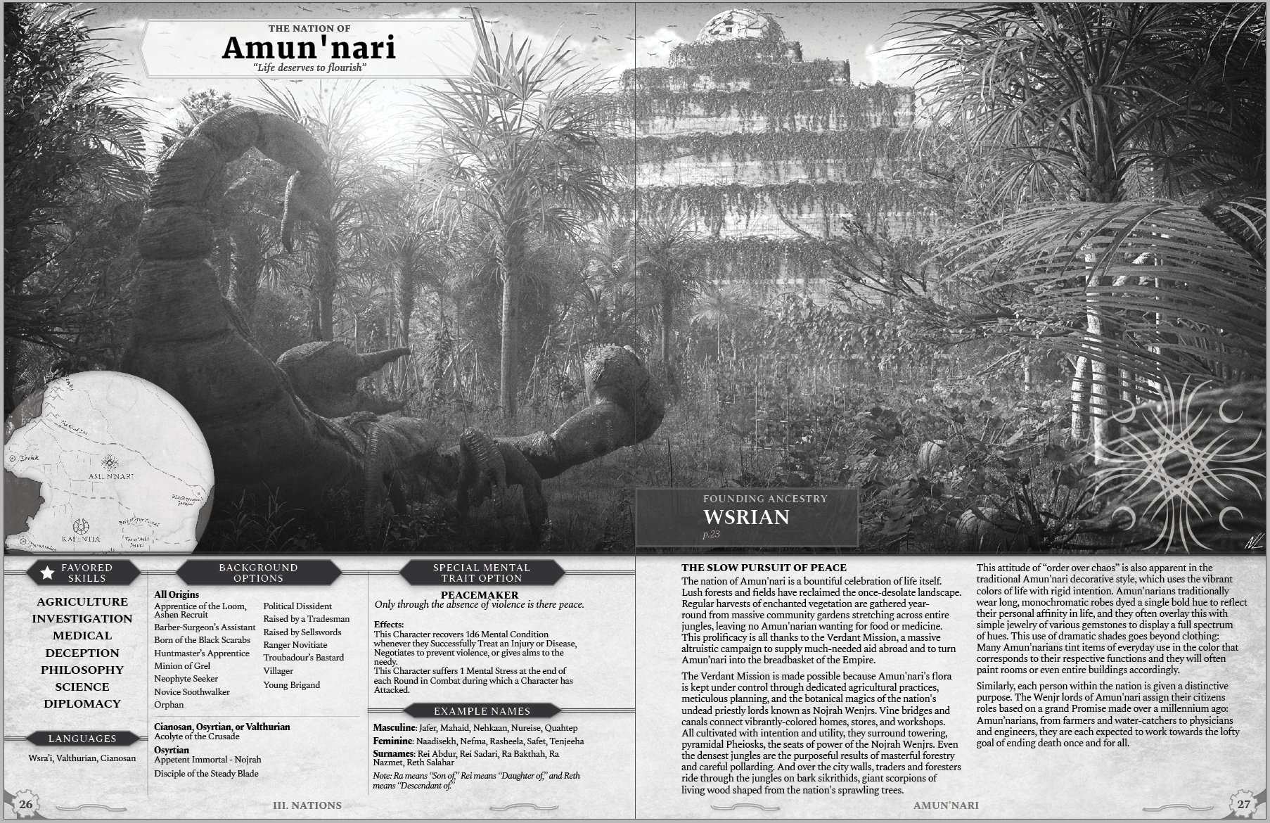 Tabletop Role Playing Game Rulebook Design. Over 400 pages of layout, 100 unique graphics and assets, and renders for marketing and prototyping.